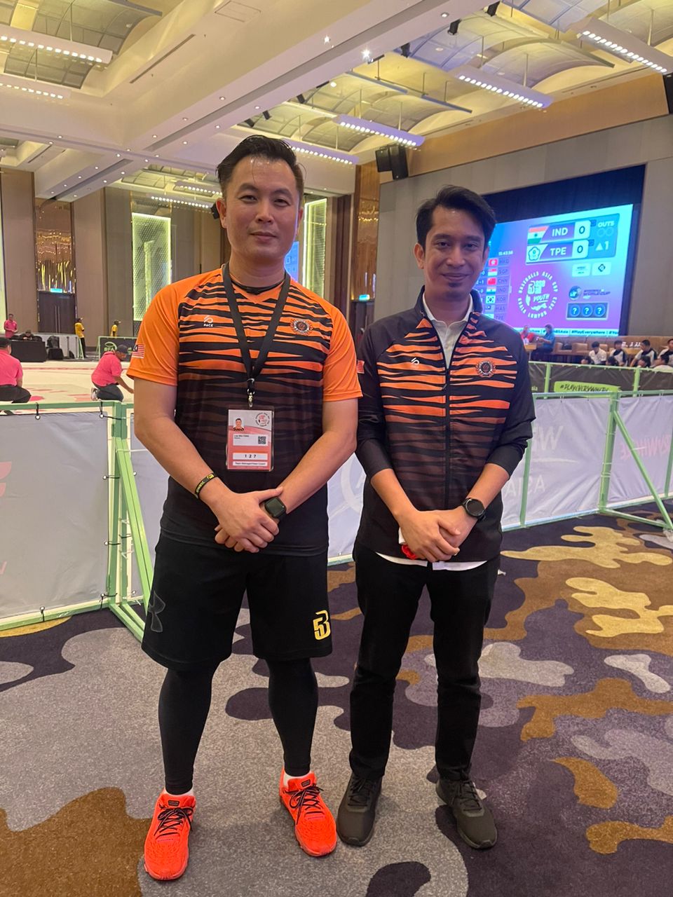 YB Adam Adli , Deputy Minister Youth with Mr. Winson Low, Head Coach of Baseball5 (B5) Malaysia Team wearing PACE Team Malaysia Tiger Stripe.